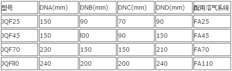 表4.JQF150-JQF600管路參數表(參見圖四)